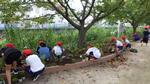 六間川の川岸の花壇の花を植え替えました。はじめは、慣れない手つきの子供たちも、だんだん上手に植えることができるようになりました。