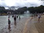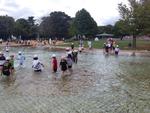 木のアトリエで写真立てを作りました。芝生広場の遊具で思い切り遊びました。にじの池で思い切り水遊びをしました。