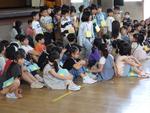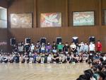 100名の1年生が、旭っ子に仲間入りしました。全校の前で一人ひとり6年生から紹介してもらいました。みんなで歌を歌い、ゲームをしました。2年生から、朝顔の種をプレゼントしてもらいました。
