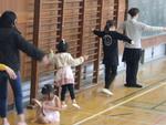 新松戸南中学校で、旭町小学校、旭町中学校、馬橋小学校、新松戸南中学校の児童、生徒と交流会を行いました。体育館でスポーツやレクリエーションをして楽しく過ごしました。