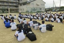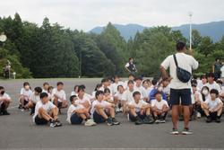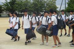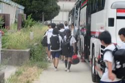 校庭に集合、出発式を行い、バスに乗車しました。お見送りに来ていただきました保護者の皆様、朝早くからありがとうございました。