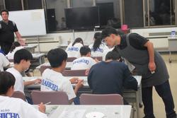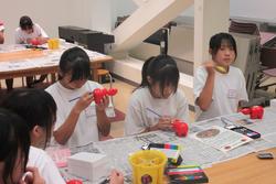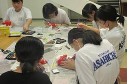 他団体も宿舎を利用しているため、入浴後、創作活動となりました。赤べこ制作と、漆塗り制作に分かれて活動しました。