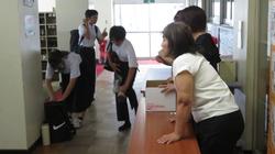 朝からたくさんの生徒たちがバザーを楽しみに、事前集金に足を運んでいました。保護者の皆様、ご協力ありがとうございました。