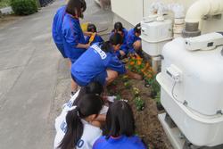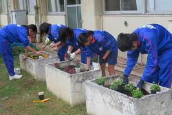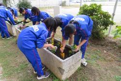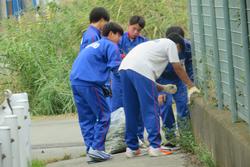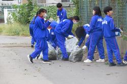 学校敷地内と周辺道路のゴミ拾いと除草を行いました。
