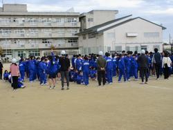 5時間目には、震度5強の地震を想定し、地震からの火災による避難訓練を行いました。