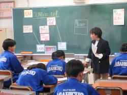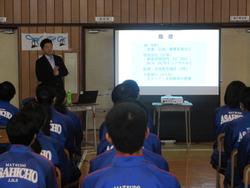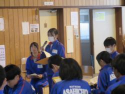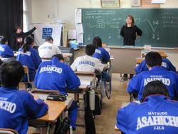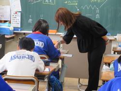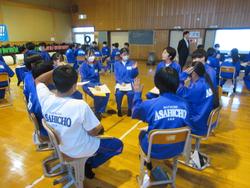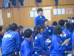 体育館で体を動かす活動を一緒に行い、その後教室にて先生自身の経歴を夢曲線として描き、ご自身が困難を乗り越えて夢に挑戦した経験をお聞きしました。生徒はワークシートを用いて、自分自身の夢について考えました。