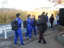 晴天の中、5組はウォーキングで土手沿いを歩きました。