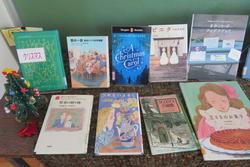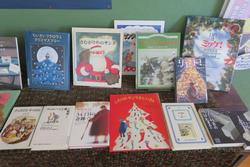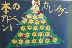 図書館の壁面に、本のアドベントカレンダーが掲示されています。