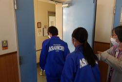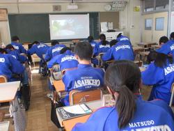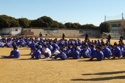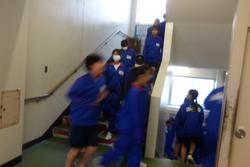 様々な場所で過ごしている生徒たちは、地震の放送でその場で一時避難、その後、それぞれの経路で校庭に二次避難を行いました。