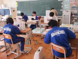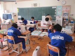 5組は来年度のバザーに向けて、早速トートバッグや巾着、雑巾などをミシンを使って製作しています。一人ひとり丁寧に作業を進める様子がありました。