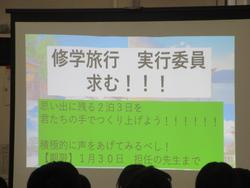2年生は午後に食堂で修学旅行についての集会を行っていました。場所は広島・京都です。しっかりと事前の準備を行って、思い出に残る良い行事にしていきたいですね。
