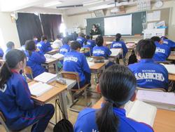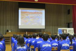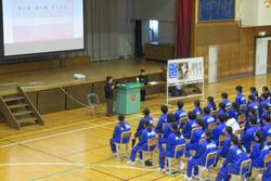 2年生は6時間目、日本原水爆被害者団体協議会 日本被団協事務局の児玉様にお越しいただき、体育館にて平和の語り部として、広島の原爆の話をしていただきました。