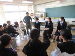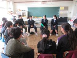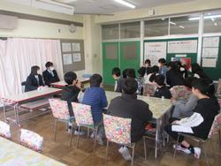 すでに進路が決まっている生徒は、旭町小学校6年生と交流会「しゃべり場」を行いました。