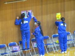 6時間目は会場作り。卒業生や保護者席を並べたり、清掃や体育館装飾をしたりと、3年生に喜んでもらおうと、1・2年生は気持ちを一つに準備を行いました。