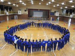 2年生は学年全体で円陣を組み、気合いを入れていました。それをみた1年生も、担当で円陣を組んで、さらに気合いを入れる姿が見られました。