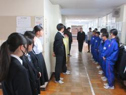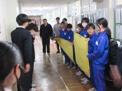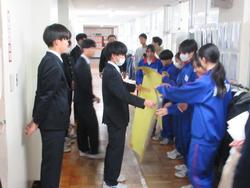 本日は公立高校の入学許可候補者の発表でした。朝学習の時間、進路が決定している3年生が、1,2年生のフロアへ行き、先週金曜日の送る会のお礼メッセージを渡しました。