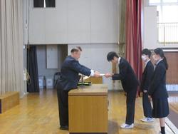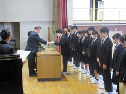 学年代表に修了証を渡し、今年度の課程が修了しました。