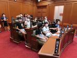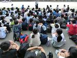 6月14日(水)に国会議事堂や憲政記念館、東京都体育館、国立競技場に行ってきました。天気は,雨が降ったりやんだりでしたが、バスでの移動中や建物の中の見学の時以外は降られることがなく予定通りに見学をすることができました。国会議事堂は、衆議院議員を見学しました。重厚な議場の様子や建物中央の3体の像や建築物のデザインに子どもたちは感動していました。外では、都道府県の樹木をみて、正面で集合写真を撮りました。