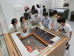 国立競技場では、はじめに競技場の外周を回り、競技ごとのメダリストのネームプレートや聖火台、炬火台(きょかだい)、ギリシャの女神像、野見宿禰像(のみのすくねぞう)などを見学しました。続いて、中に入りました。サインウォール、フラッシュインタビューゾーンでトーチや表彰台、選手のロッカールームではサインや記念の品々の展示等を見学しました。トラックやフィールドでは集合写真を撮り、トラックを元気に走る人もいました。フィールドから観客席に上がり、競技場を見回したり、最上階の客席、展望台まであがり競技場全体を見下ろしたり、天井を見たりしました。また、昔使われた白い表彰台があり、記念撮影をした人もいました。