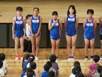 9月27日(水)に,児童集会として松戸市小学校体育大会に参加する陸上部の壮行会が行われました。体育大会は,10月4日に運動公園で行われます。種目は,100メートル走,80メートルハードル走,男子1000メートル走,女子800メートル走,走り幅跳び,走り高跳び,ボール投げ,そして4×100メートルリレーです。