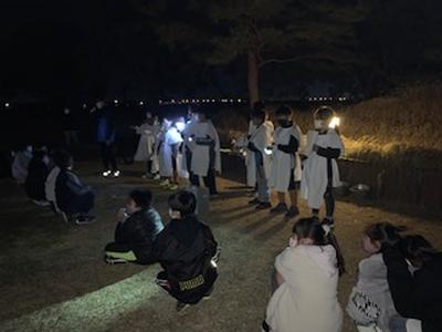 18:30 火の神から炎を分け与えられた火の精たちが火を灯し、キャンプファイヤーが始まりました。第2部は、ダンスやゲームで盛り上がりました。