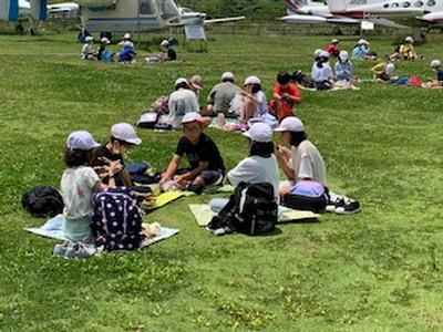 航空博物館の見学の後はランチタイムです。青空の下、みんなで食べるランチは最高です!