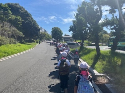 渋滞もなく、予定通り葛西臨海水族園に到着しました。学級写真を撮り、これから昼食をとります。その後、班で園内を観察します。