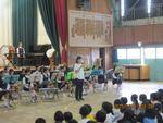 全校朝会の後に、陸上部と吹奏楽部の壮行会を行いました。児童会役員が司会進行を行いました。始めに吹奏楽部が、小中合同音楽会で演奏する曲を披露しました。担当の先生の指揮に合わせて、心を合わせて演奏しました。部長さんから立派な挨拶がありました。