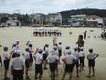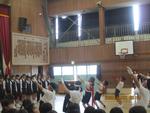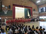 最後に、応援団が二つの部活の子供たちにエールを送りました。大きな声で応援し、全校の子供たちもあとについて声援しました。会場が一つになってみんなで応援することができました。