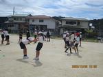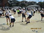 今日の業間体育は、思ったより天気が良くなって汗ばむぐらいでした。子供たちは、流れを理解してきています。音楽に合わせてリズム跳び、上手になってきました。二人組になって体づくり運動、引っ張りっこが楽しいです。そして、学年で考えた運動、ボールを使ったり、リレー形式で走ったりします。短い時間ですが、効果的に運動を行っています。