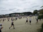 天気がはっきりしなかったので、朝、正門で、「校長先生、今日はマラソン練習あるの。」と聞いてくる子が多かったです。その心は、「雨降ってほしいな。」というところでしょうか。しかし、丈夫な体を児童期に作ることは将来の健康にも大きくかかわるので、大切です。マラソンの練習は、子供たちの心肺機能、持久力を高めます。練習は、時間を決めて無理なく行っており、先生たちも子供の様子を見ながら安全に配慮しています。「今日は、4周走ったよ。」「僕は5周だよ。」と話しました。自分の目標をもって、だんだんに高めてほしいと思います。つらいことや苦しいことに立ち向かって練習することも良い経験になります。ご家庭でも励ましてください。