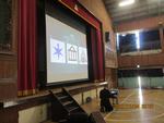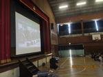 全校朝会の後、創立記念集会を行います。暗幕をかけて暗くすると、子供たちは「何が始まるのかな。」とわくわくして準備を待ちました。