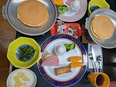 朝食はパンケーキでした。子供たちは美味しくいただきました。