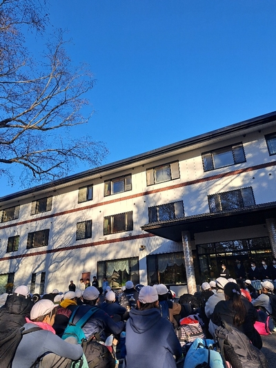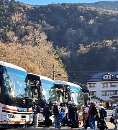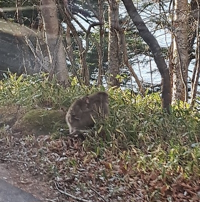 出発の会をして宿の方にお礼をして、出発しました。野生の猿が道路にたくさんいて子供たちが歓声をあげていました。