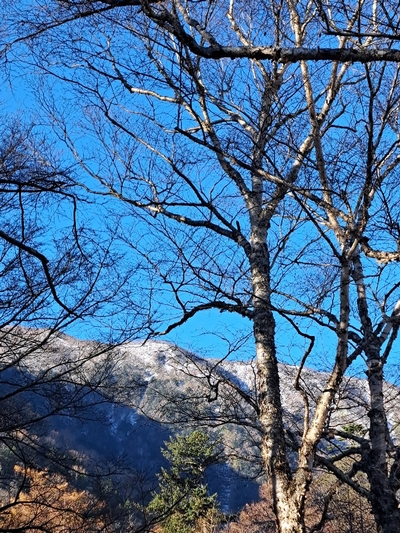 おはようございます。今日もよい天気です。奥日光の山々の山頂には雪が積もっています。