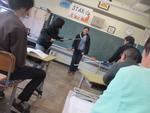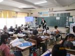 児童下校後、来月に学校の避難訓練で不審者対策避難訓練がありため、事前に松戸東警察の方から教職員が研修を受けました。