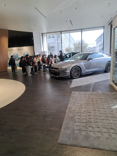 日産追浜工場で見学をしました。ゲストホールでの撮影しか出来ませんが、子供達は案内の方について工場内を興味深く見学しました。