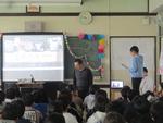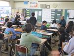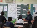 5校時に5年生が総合的な学習の時間でお世話になっている成嶋さんが来校しました。子供たちが野菜を多くの人に買ってもらうために、野菜にキャラクターのシールをはろうと企画しました。そして、成嶋さんに来ていただき、子供達と一緒にどんなキャラクターがよいか話し合いました。子供たちは意欲的に質問をして、成嶋さんの意見が入ったキャラクターにしようと取り組みました。お忙しい中、来ていただきありがとうございました。キャラクターが完成したら成嶋さんの野菜を扱っているお店に行ってみてください。私も楽しみです。