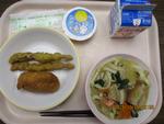 14日 じゃこ小松菜ご飯 おさつあげ まめまめ汁 みかん