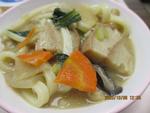 味噌煮込みうどんが野菜たっぷり、お麩に味がしみていておいしかったです。