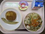10日 ポークカレーライス 子ぎつねサラダ オレンジ