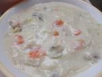 今日は気温が低いので、温かいクラムチャウダーはうれしいです。