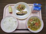 25日 ご飯 いなだの照り焼き 野菜のごまみそ和え さつま汁 りんご