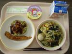 26日 コーンわかめラーメン ししゃものフライ シーフードお好み焼き アセロラゼリー