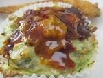 シーフードお好み焼きはタコやイカなどのほか、キャベツや青のりも入っていて満足感があります。