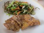 子供たちが大好きな鶏の竜田揚げ、大きくてサクサクです。
