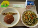 9日 かきたまうどん なめしおにぎり 野菜チップス 干しプルーン