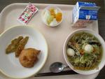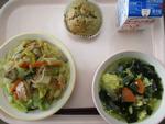 22日 野菜ラーメン じゃが丸君 わかさぎのフリッター 杏仁豆腐