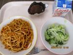 27日 スパゲッティボロネーゼ 梨ドレッシングサラダ 豆腐ドーナッツ