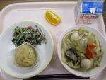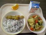 27日 ひじきとベーコンのピラフ わかさぎのフリッター サンラータン オレンジゼリー